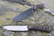 Hier ein Messer aus pulvermetallurgischen,rostfreiem Damasteel. Die