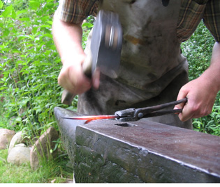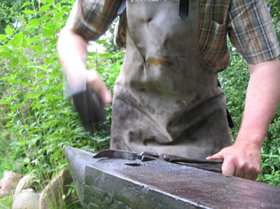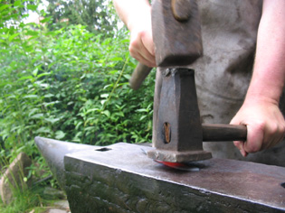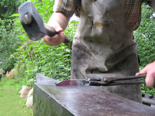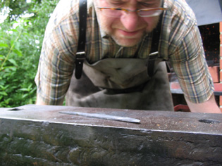 wird die Klinge auf dem Runddorn ausgeschmiedet indem man